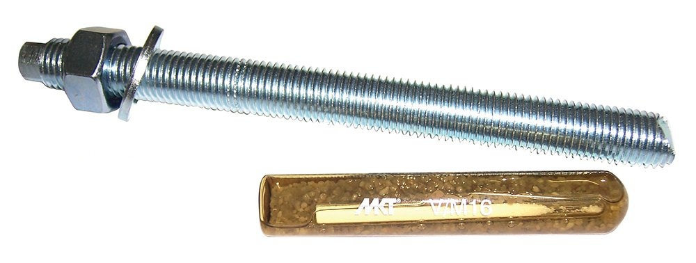 Двухкомпонентные составы, поставляемые в стеклянных емкостях. Ампула помещается в отверстие, в которое затем вставляется крепеж. Анкер разбивает стеклянную оболочку, высвобождая клей. Осколки емкости выступают в роли арматуры, обеспечивая дополнительную прочность соединения. Ампульные анкеры оптимальны для работы с бетоном и кирпичом. Они поставляются в защитной упаковке, различаются длиной и диаметром.