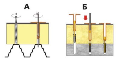• гвоздь вкручивается посредством резьбы, покрывающей его верхнюю часть.