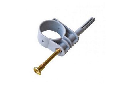 Хомут для труб предназначен для быстрого и надежного крепления труб или кабеля к бетонному или кирпичному основанию. Представляет собой комбинированное изделие, состоящее из пластикового кольца и дюбеля с шурупом для быстрого монтажа. Непосредственно перед монтажом хомут обхватывает прикрепляемую трубу, затем дюбель вставляется в предварительно просверленное отверстие соответствующего диаметра и расклинивается при помощи ударного стального шурупа. Соединение разъёмное и в случае демонтажа шуруп можно выкрутить. Данное изделие выпускается четырех размеров, рассчитанных на трубы диаметром 16,20,25,32 мм. причем каждый из размеров труб может отличаться на 1-2 мм в ту или другую сторону от номинала.