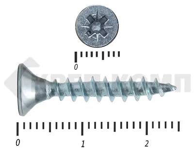 - Pz («Позидрив») – у желтых и белых универсальных саморезов. Размер шлица (№1, №2 или №3) зависит от диаметра головки. Чем больше размер крепежа – тем больше шлиц под крестовую отвертку или биту-насадку для шуруповерта;